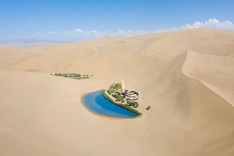 五月敦煌的鸣沙山和月牙泉山色相映